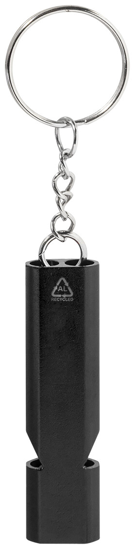 Píšťalka z recyklovaného hliníku s kovovým kroužkem na klíče.