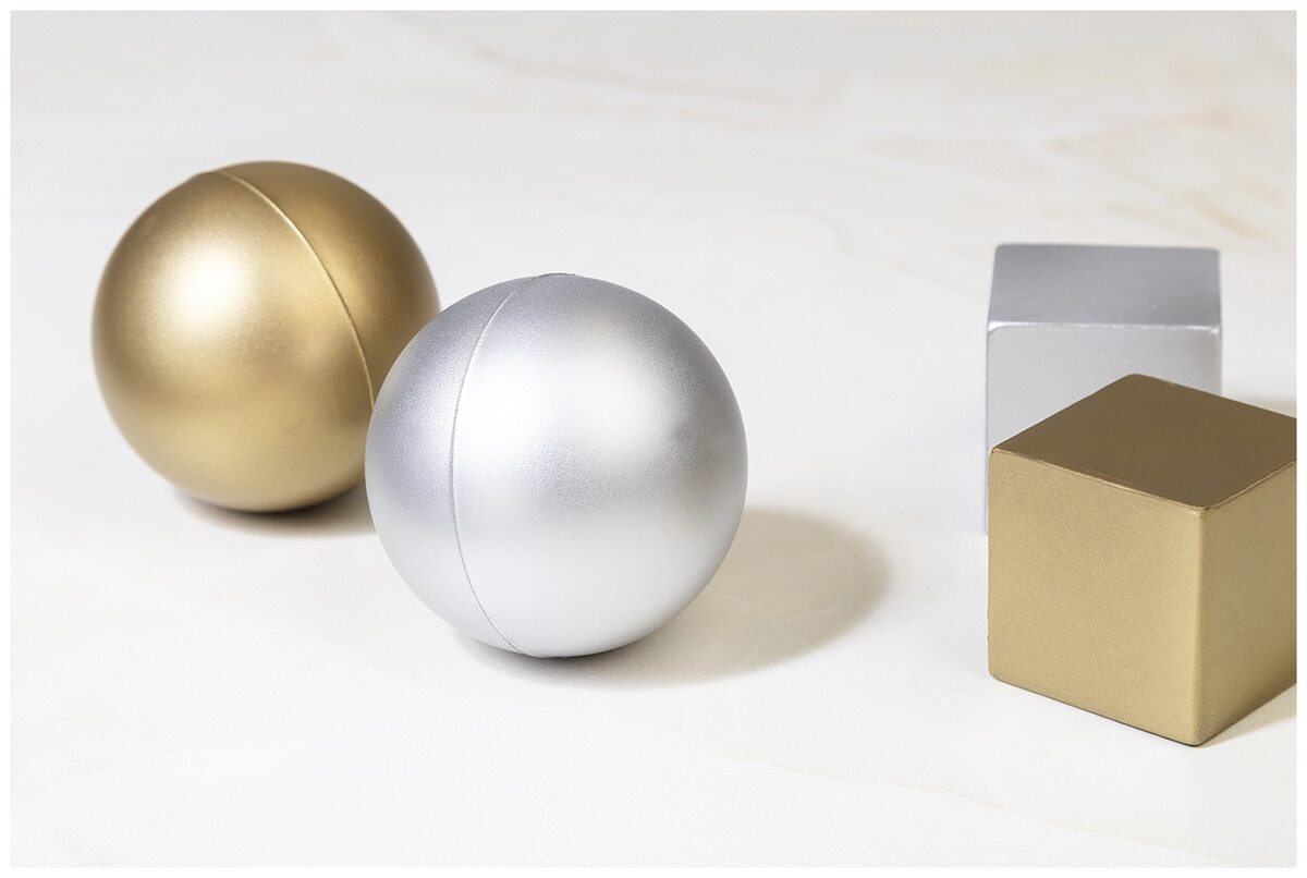 Antistresový míček z PU pěny s metalickým povrchem.
