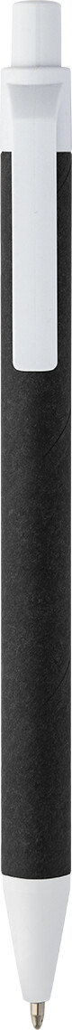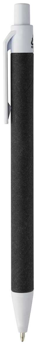 Kuličkové pero z recyklovaného papíru s černým tělem a recyklovanými ABS díly. S modrou náplní.