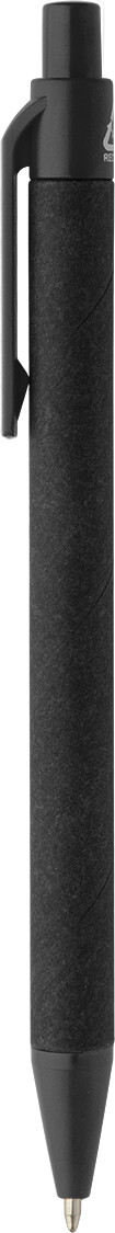 Kuličkové pero z recyklovaného papíru s černým tělem a recyklovanými ABS díly. S modrou náplní.
