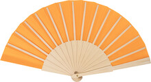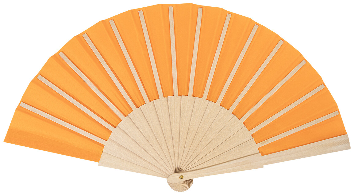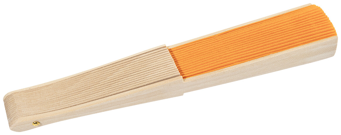 Vějíř z RPET polyesteru s dřevěnými žebry.