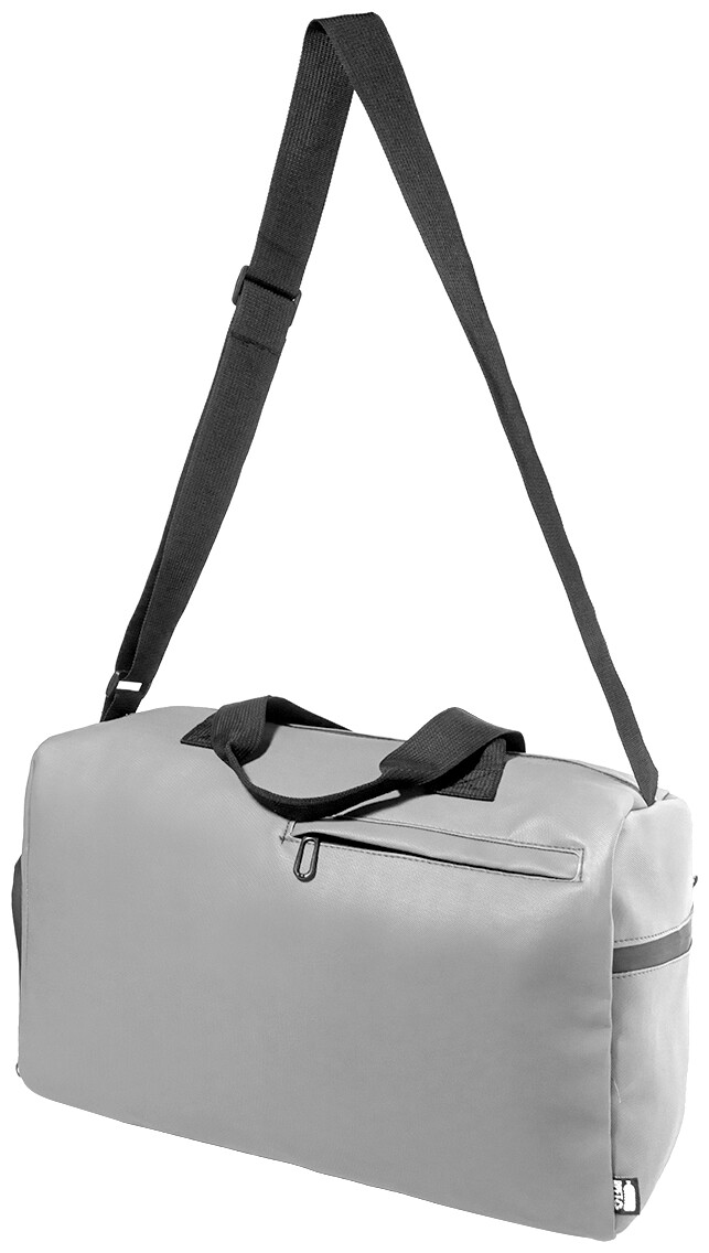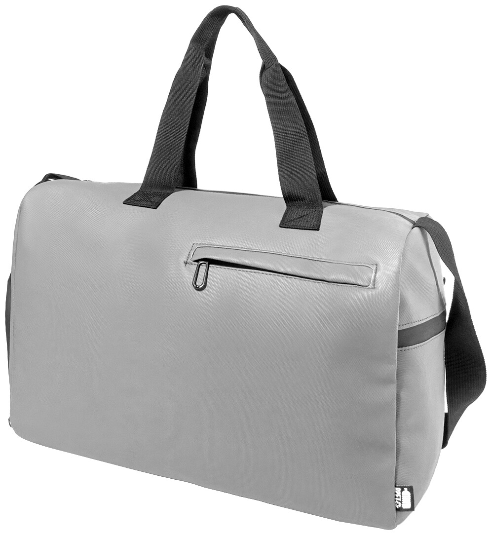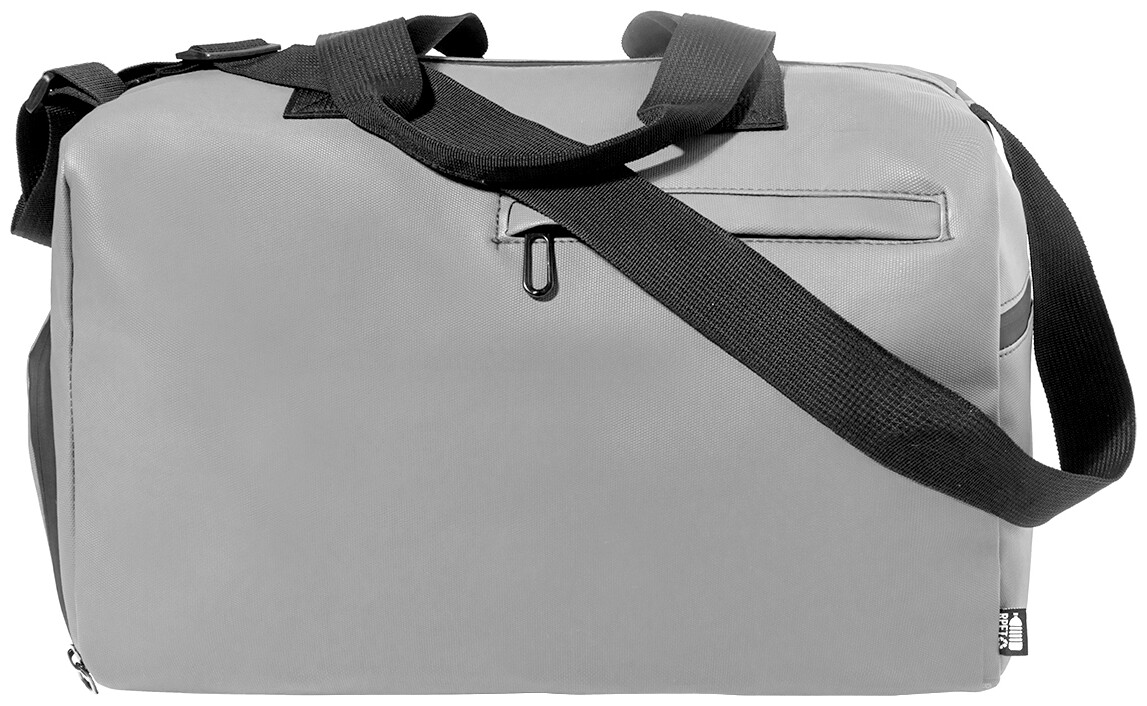 Voděodolná sportovní taška z RPET s hlavní přihrádkou na zip, přední kapsou na zip, přihrádkou na boty na zip a nastavitelným ramenním popruhem. Polyester 600D RPET s PU zátěrem a výrazným štítkem RPET.