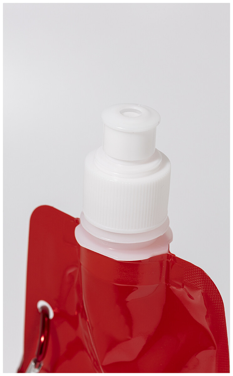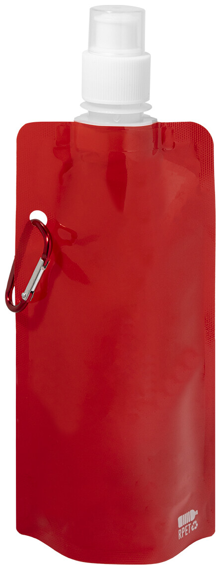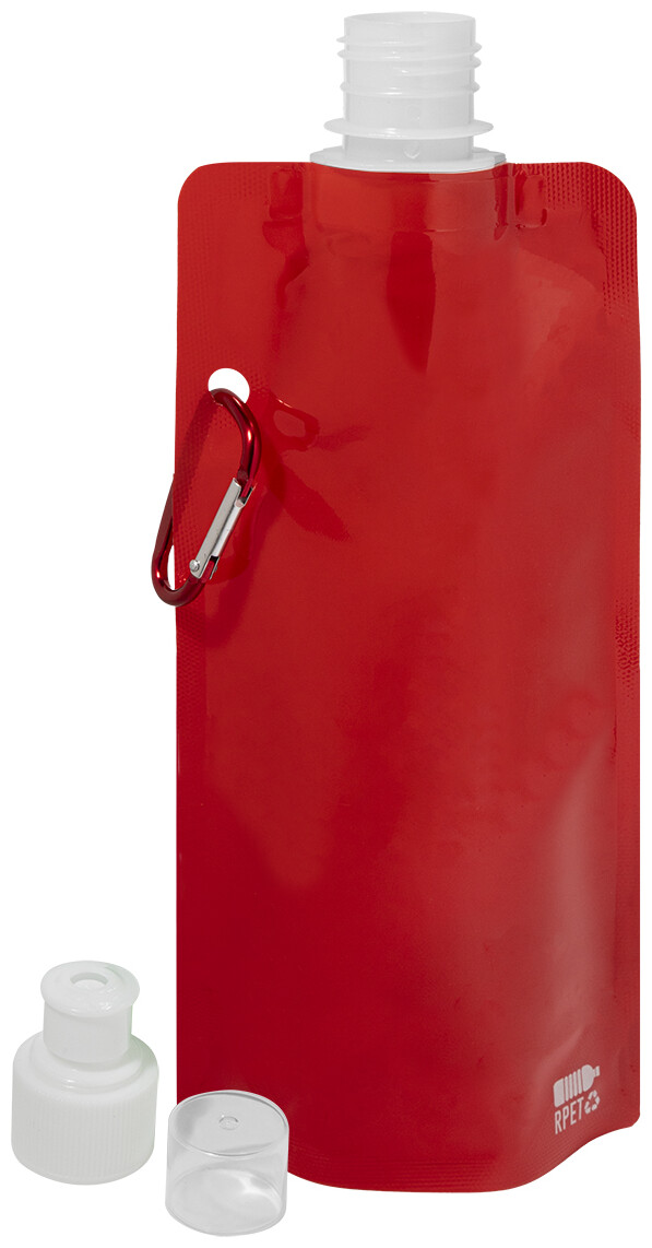 Skládací sportovní láhev z RPET s víčkem na pití a hliníkovou karabinou, 500 ml. Bez BPA. Nevhodná pro sycené nápoje.