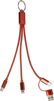 Nabíjecí kabel USB-C z recyklovaného hliníku a RPET s přívěskem na klíče. S konektory micro USB, USB-C a Lightning. S USB a USB-C vstupy.