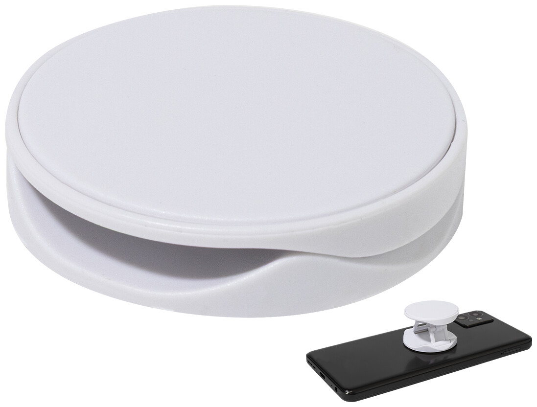 Kulatý držák na mobil z recyklovaného ABS se samolepicí základnou.