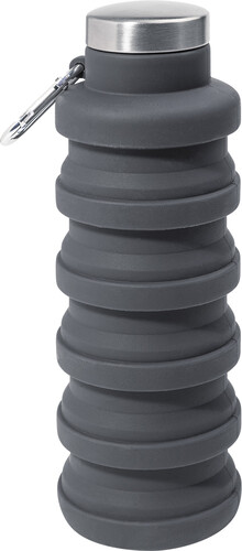 Skládací silikonová láhev s víčkem z nerezové oceli a hliníkovou karabinou. 500 ml