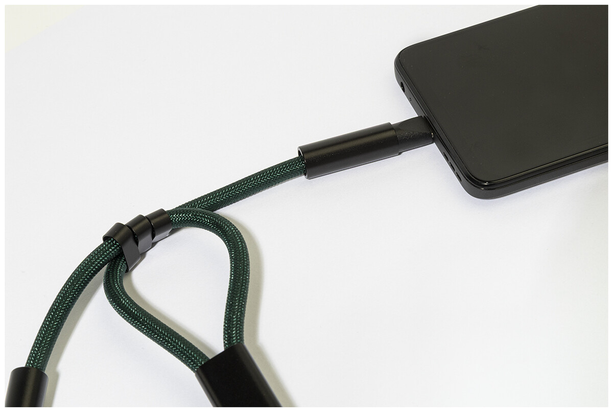 60W RPET kabel s náramkem na mobil CuffCharge, tmavě zelená