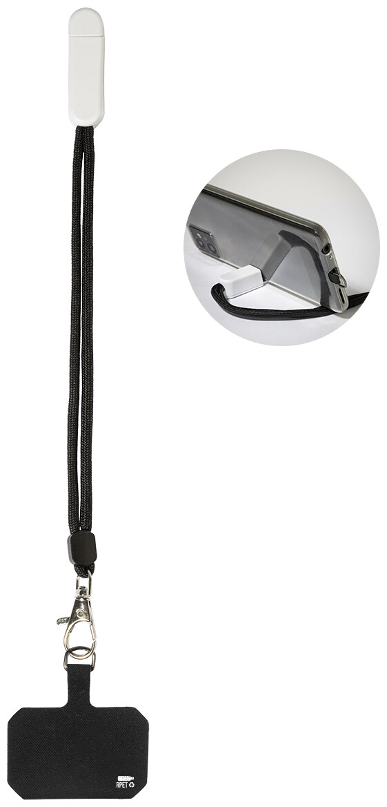 Držák na mobil z RPET s vložkou pro telefon a stojánkem na mobilní telefon z recyklovaného ABS.