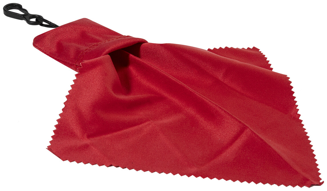 Čisticí hadřík ze 100% RPET mikrovlákna (220 g/m2) na brýle a obrazovky. Přenosné pouzdro z odpovídajícího materiálu s PP karabinou. Rozměr hadříku: 15×15 cm.