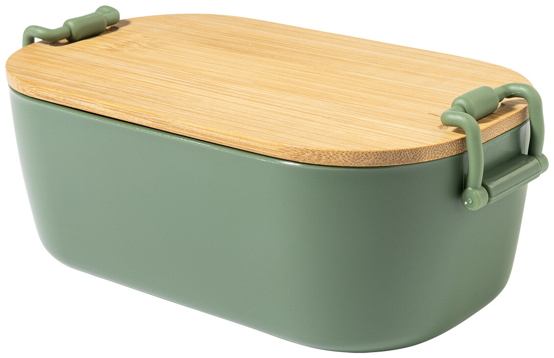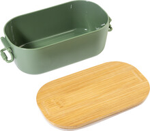 Box na jídlo z PP plastu s bambusovým víkem a uzávěrem na přezku, 1000 ml.