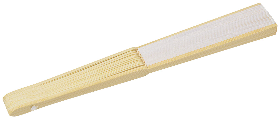 Vějíř z RPET polyesteru s bambusovými žebry.