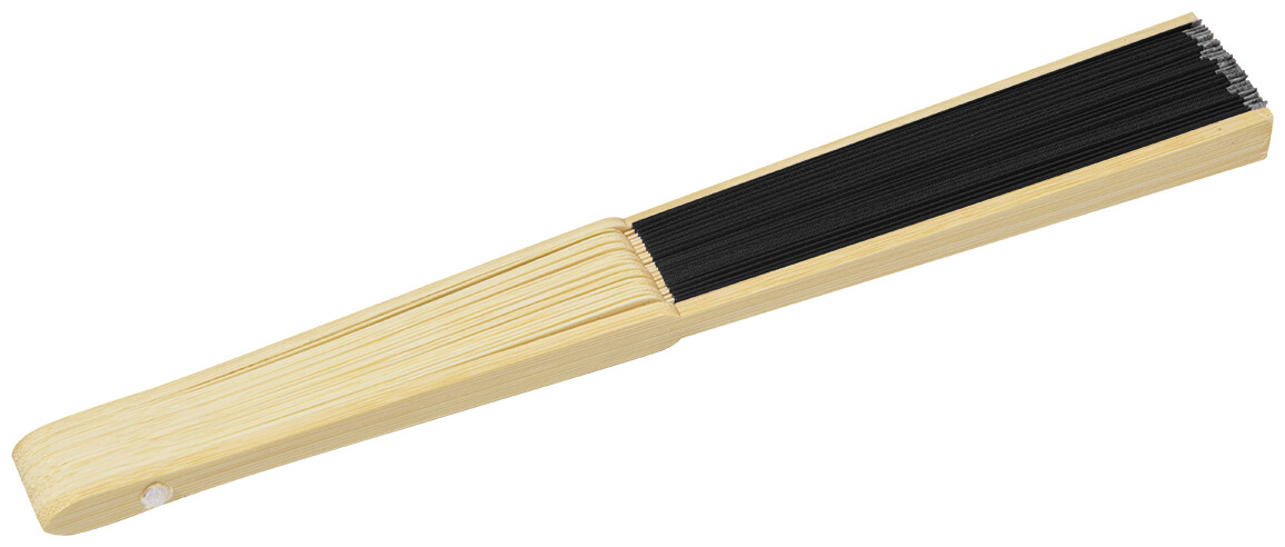 Vějíř z RPET polyesteru s bambusovými žebry.
