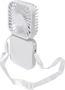 Elektrický ruční větráček z recyklovaného ABS plastu s poutkem na krk a vestavěnou dobíjecí baterií přes USB (500 mAh). S nastavitelným úhlem hlavy a 3 rychlostmi. Včetně USB kabelu pro nabíjení.