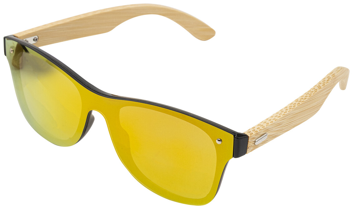 Sluneční brýle se zrcadlovými jednodílnými čočkami a bambusovými nožičkami. S ochranou UV 400.