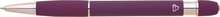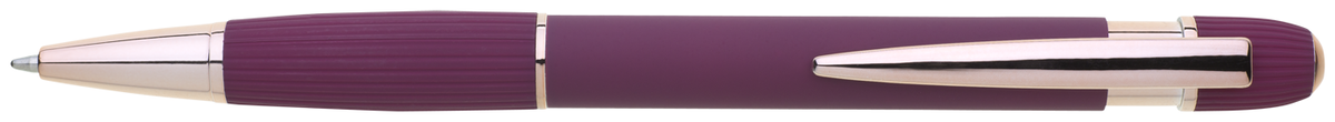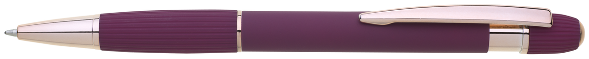 propiska z recyklovaného hliníku se soft povrchem a doplňky v růžovo-zlaté barvě. Laserované logo je lesklé, růžovo-zlaté. Náplň modře píšící. Výsledný efekt laserového značení je lesklý, v barvě doplňků.