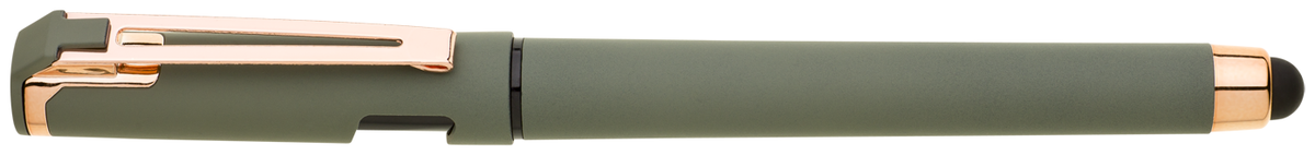 Elegantní gelové pero ROSEO SOFT GEL se soft povrchem, touch koncovkou a doplňky v růžovo-zlaté barvě. Pero má gelovou velkoobsahovou náplň, která píše modře.