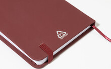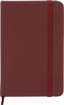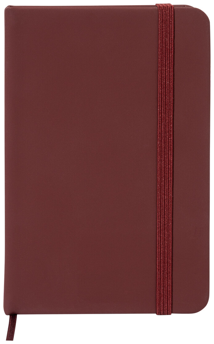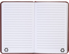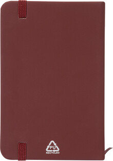 Blok potažený recyklovanou PU kůží se 100 linkovanými listy z recyklovaného papíru. Se záložkou v odpovídající barvě a gumičkou. Velikost A6.