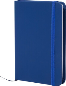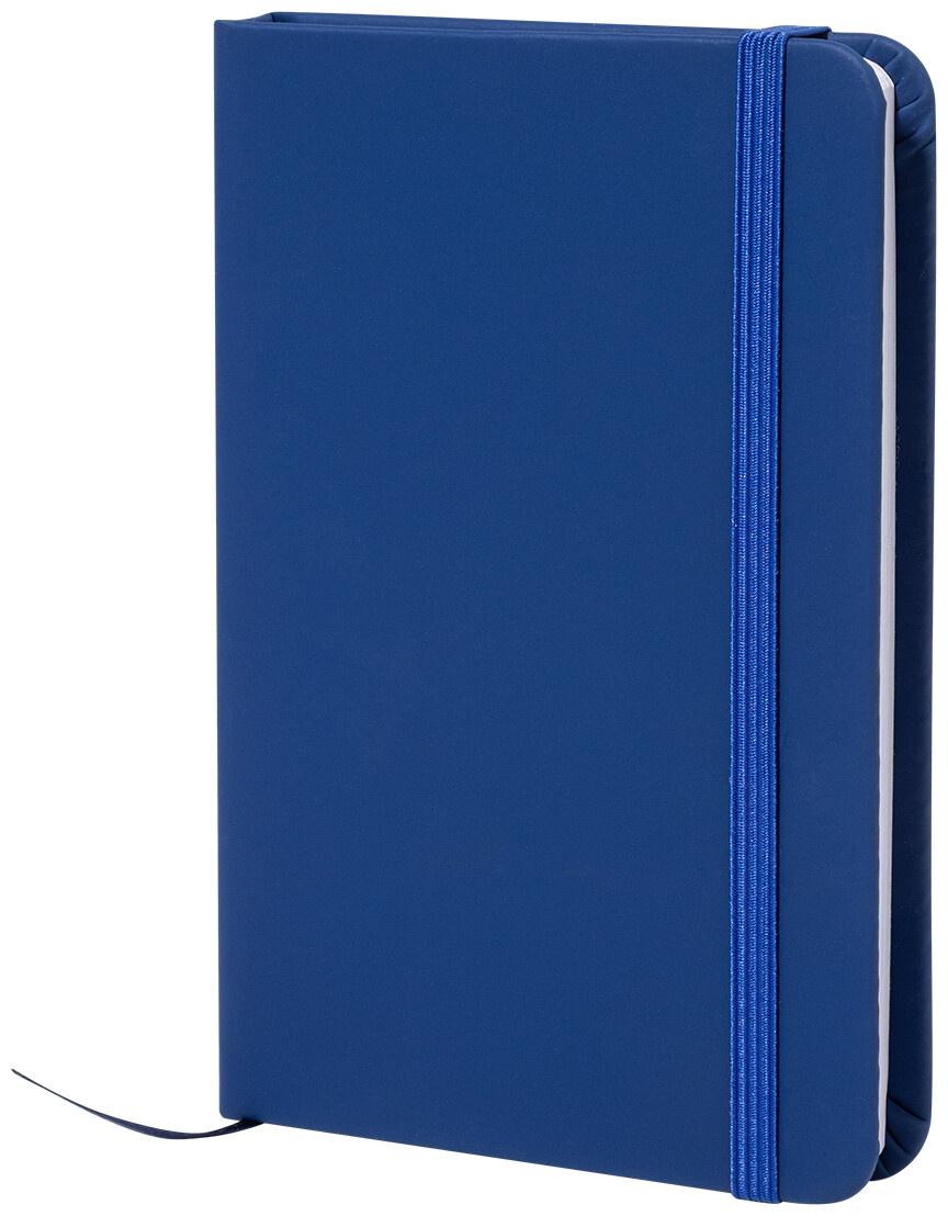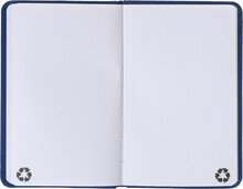 Blok A6 z recyklované PU kůže se 100 čistými listy z recyklovaného papíru. Se záložkou v odpovídající barvě a gumičkou.