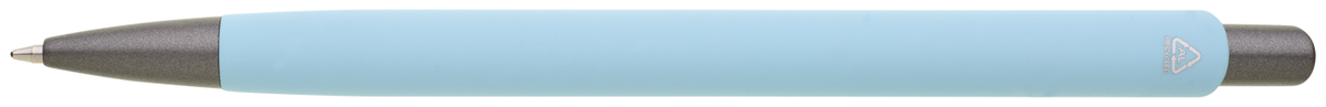 LIVOX SOFT RE – kovová propiska s pogumovaným soft povrchem z recyklovaného hliníku. Propiska má matné šedé doplňky. Náplň velkoobsahová, modře píšící.