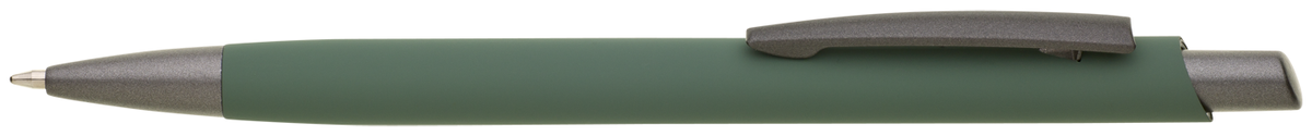 LIVOX SOFT RE – kovová propiska s pogumovaným soft povrchem z recyklovaného hliníku. Propiska má matné šedé doplňky. Náplň velkoobsahová, modře píšící.