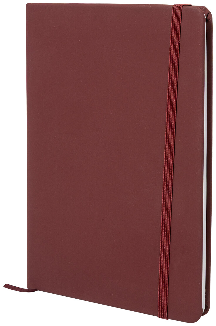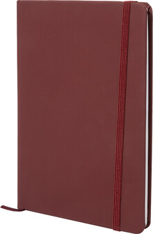 Blok potažený recyklovanou PU kůží se 100 linkovanými listy z recyklovaného papíru. Se záložkou v odpovídající barvě a gumičkou. Velikost A5.
