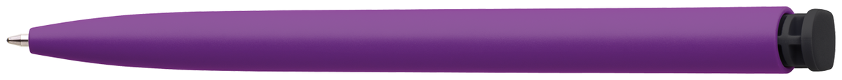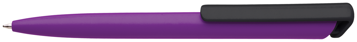Česká propiska BOIA v minimalistickém designu fialového oválného těla s dynamickým tvarem černého masivního klipu. Tělo i klip nabízí velký prostor pro značení logem zákazníka. Materiál plast, náplň velkoobsahová, modře píšící. BOIA je vyráběna v České republice.