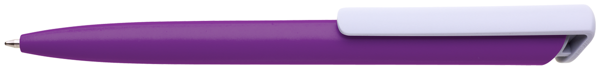 Česká propiska BOIA v minimalistickém designu fialového oválného těla s dynamickým tvarem bílého masivního klipu. Tělo i klip nabízí velký prostor pro značení logem zákazníka. Materiál plast, náplň velkoobsahová, modře píšící. BOIA je vyráběna v České republice.