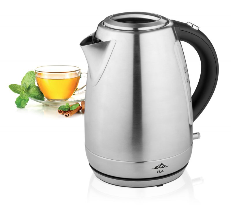 Rychlovarná konvice ETA Ela zaujme snadno čistitelným povrchem. Je snímatelná z podstavce, na kterém je otočná o 360°. Vládne vysokým příkonem 2100 W, pro rychlé přivedení k varu až 1,7 l vody. Při plnění konvice oceníte přehledný ukazatel stavu vody, ve výlevce je umístěn omyvatelný filtr zabraňující vápenatým usazeninám. Topná spirála je ukryta pod nerezovým dnem. Součástí podstavce je i odolný kontaktní systém zaručující vysokou bezpečnost provozu. Nepostrádá bezpečnostní výklopné víko, ani ochranu proti chodu naprázdno či přehřátí. Samozřejmostí je i prostor pro navinutí přívodního kabelu v podstavci.