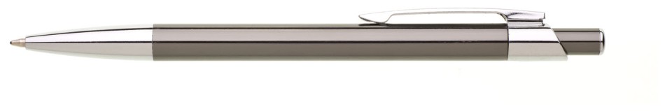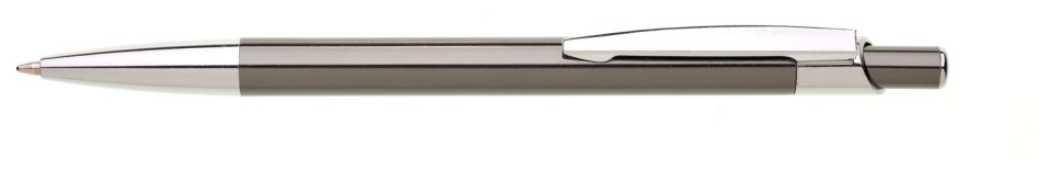Kovová šedá propiska s lesklým povrchem a charakteristickou protáhlou špičkou. Špička i klip jsou pochromované.