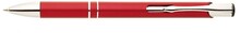 Plastové propisovací pero OIRA - červené. Pero je zdobené dvěma stříbrnými proužky. Na těle je zdobeno oválným výřezem. Pero má náplň velkoobsahovou, modře píšící.