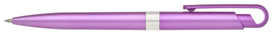 Plastové, kuličkové pero FIROL má růžové, metalické tělo se stříbrným rýhovaným proužkem uprostřed. Náplň velkoobsahová, modře píšící. Kolekce DESIGN.