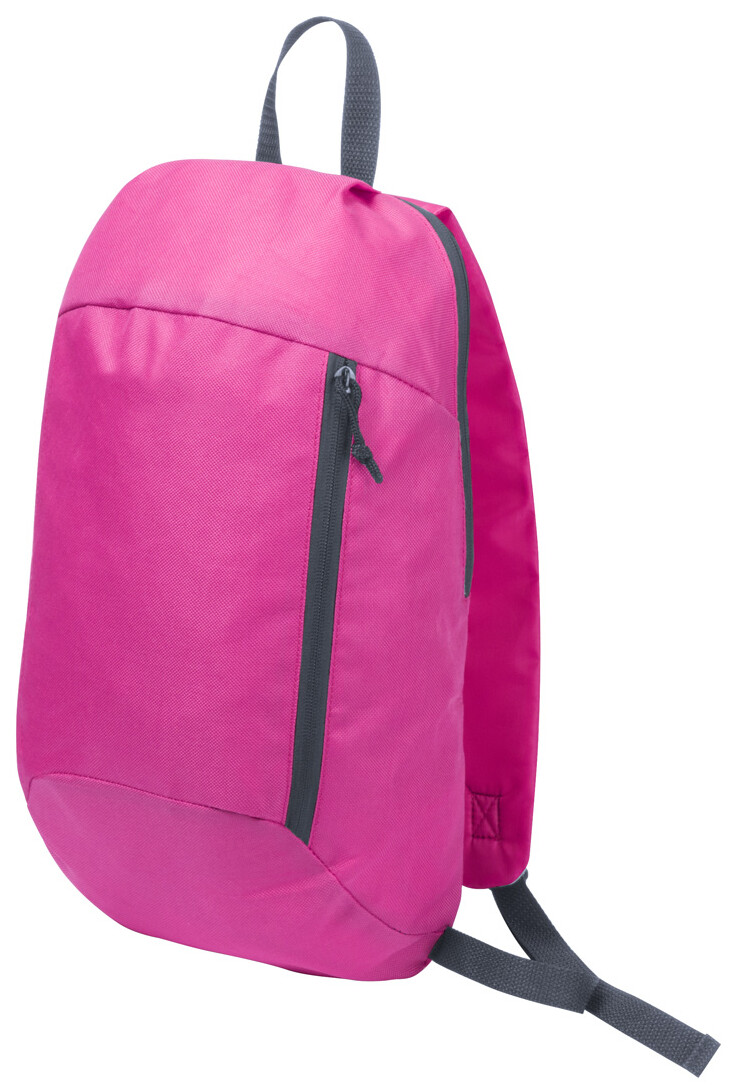 600D polyesterový batoh s vypolstrovanými zády, nastavitelnými popruhy a se zipem na přední kapse.