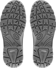 Pracovní kotníková obuv, kožená, s reflexními doplňky. Materiál: svršek z 1,6 - 1,8 mm štípenkové nubukové kůže (z jednoho dílu), vnější TPU ochrana paty, bez kovových součástí, podšívka z prodyšné oděru odolné textilie, PU-PU olejivzdorná, antistati