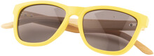 Sluneční brýle s barevnými plastovými obroučkami a bambusovými nožičkami. S ochranou UV 400.