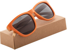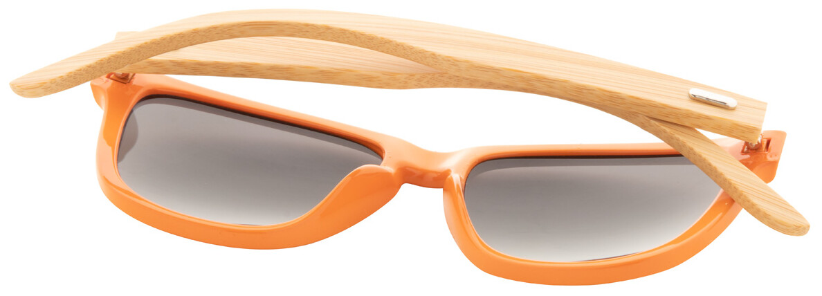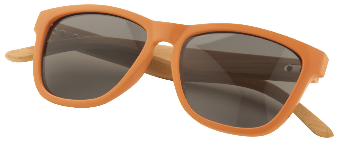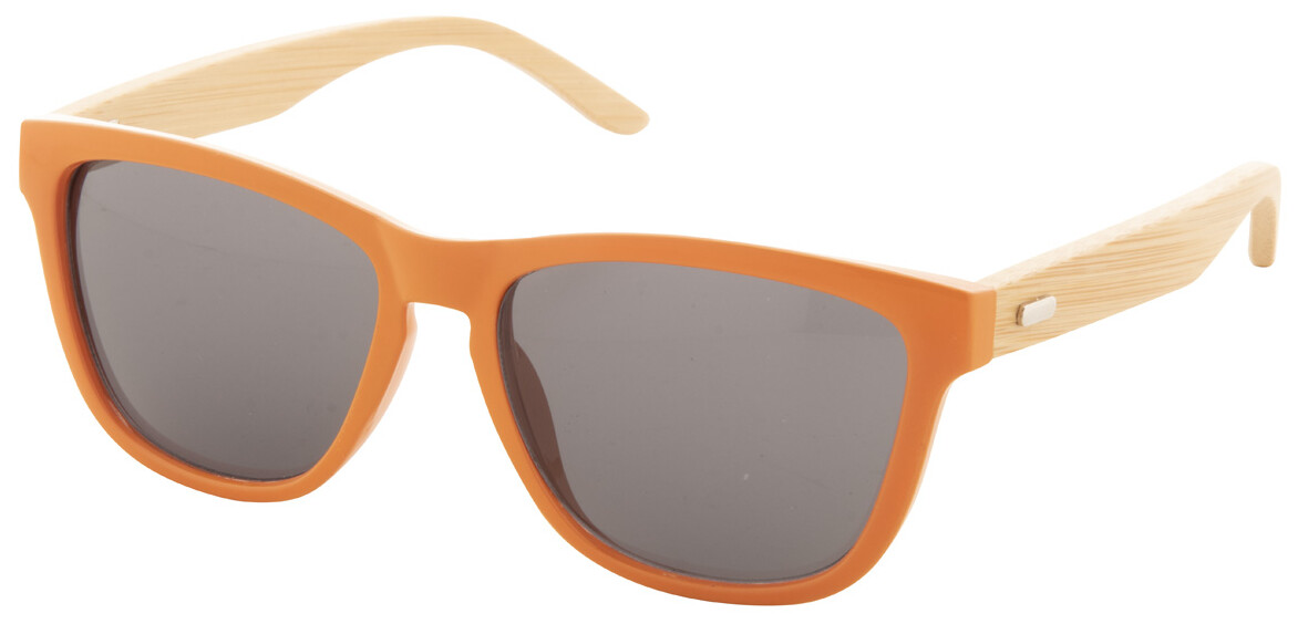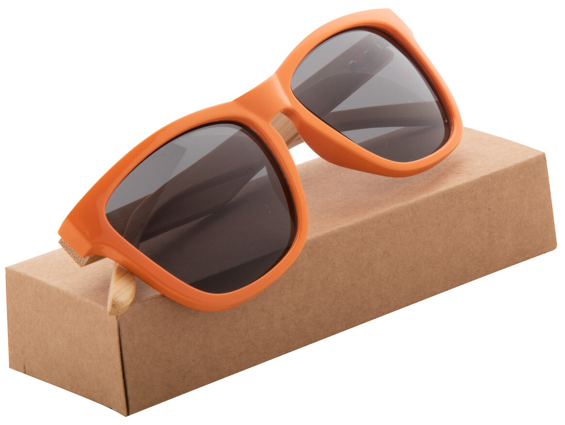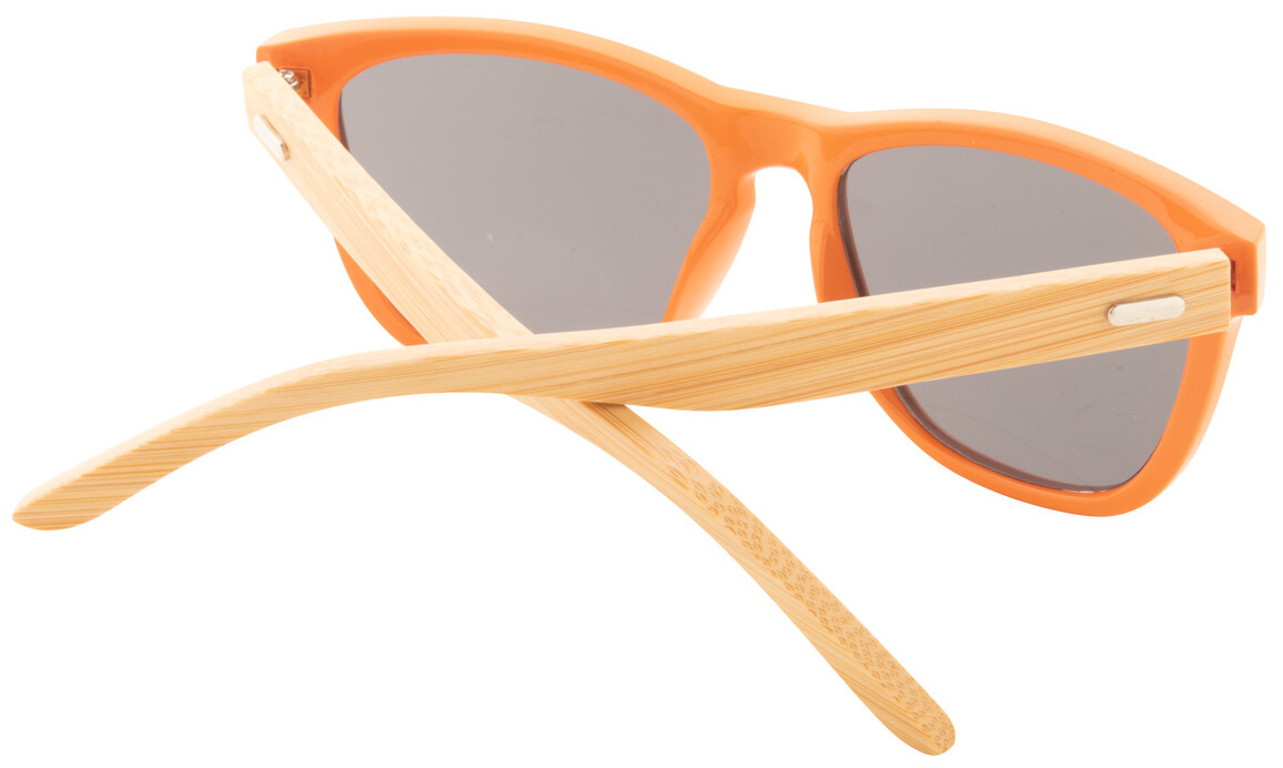 Sluneční brýle s barevnými plastovými obroučkami a bambusovými nožičkami. S ochranou UV 400.