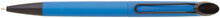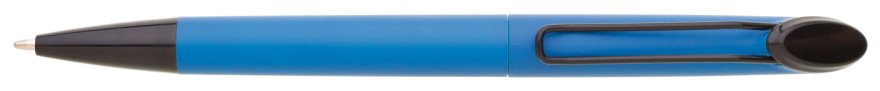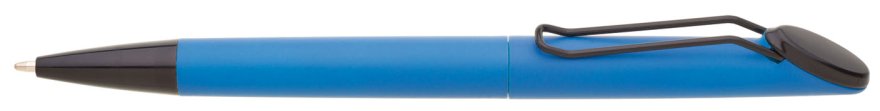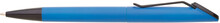 Plastová otočná propiska ARESTA v neonově modré barvě s černou špičkou a černým kovovým klipem. Na držák klipu je možné umístit epoxy samolepku. Náplň velkoobsahová, modře píšící.