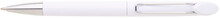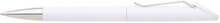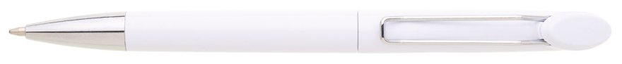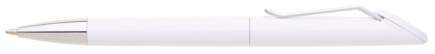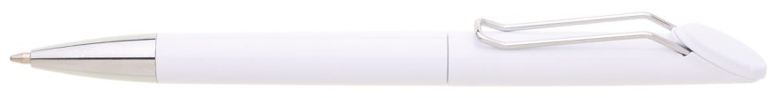 Plastová bílá otočná propiska RONEBI s chromovou špičkou a chromovým klipem. Držák klipu je bílý a je možné na něj umístit epoxy samolepku. Náplň velkoobsahová, modře píšící.