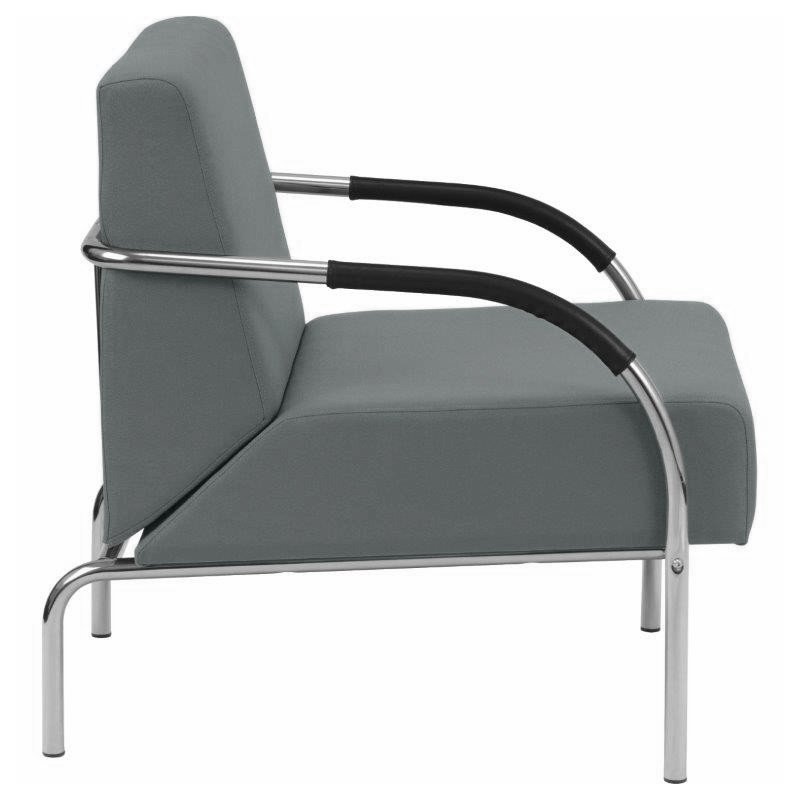 Celočalouněné konferenční sezení se stabilní svařovanou konstrukcí, vyztuženým opěrákem a područkami potaženými koženkou. Kombinace jedno-, dvoj- a trojsedáku tvoří dohromady sedací soupravu.
