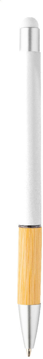 Hliníkové kuličkové a dotykové pero s bambusovým uchopením a matným povrchem. S modrou náplní.