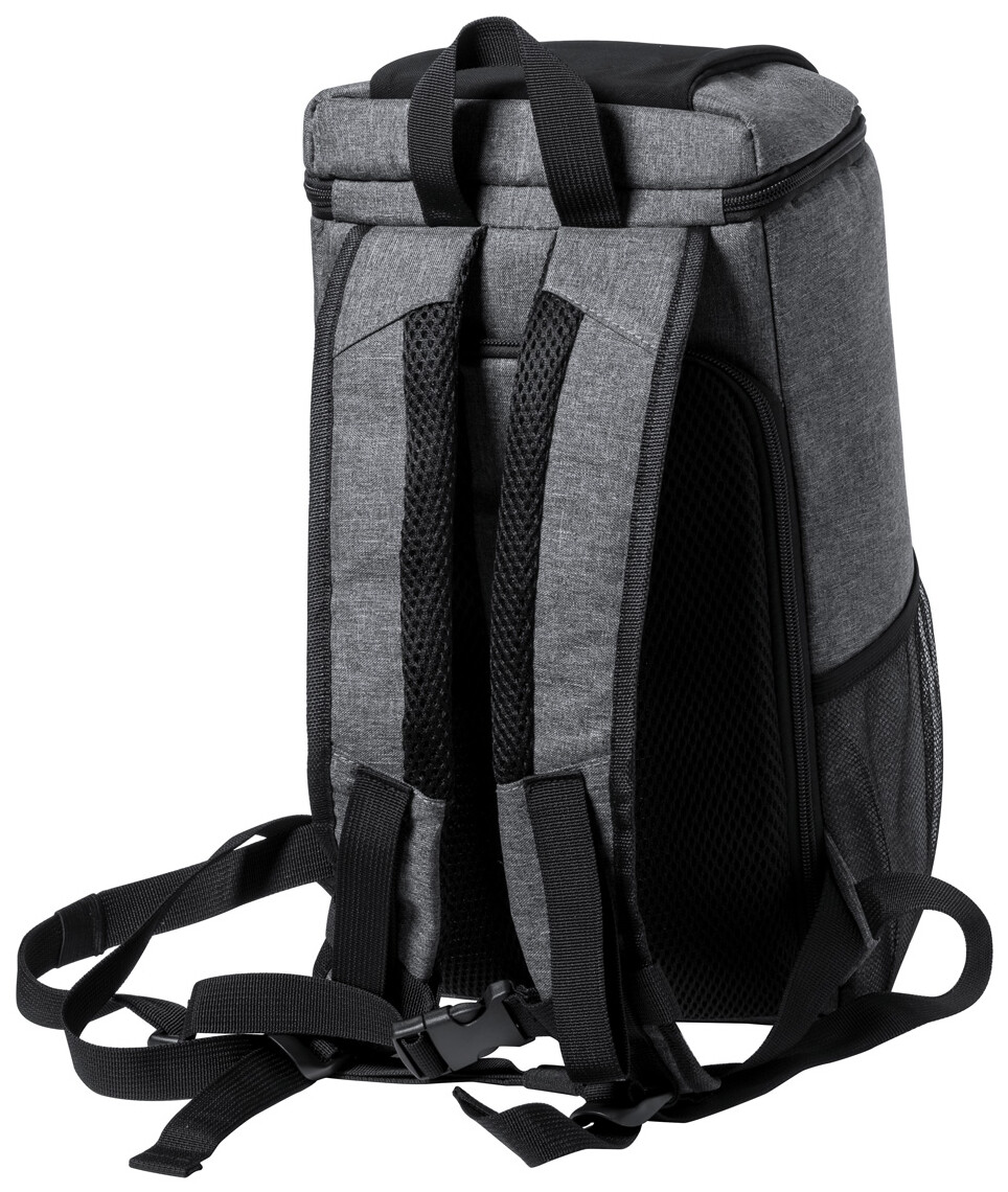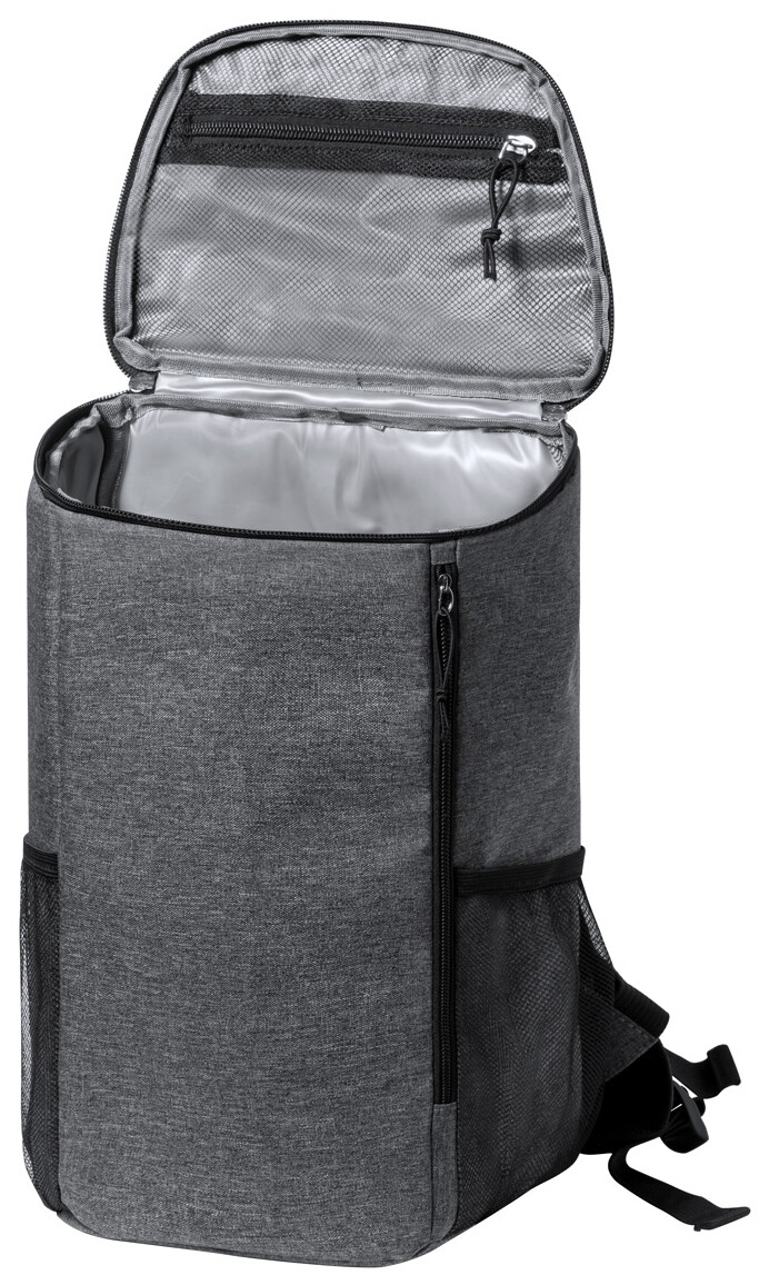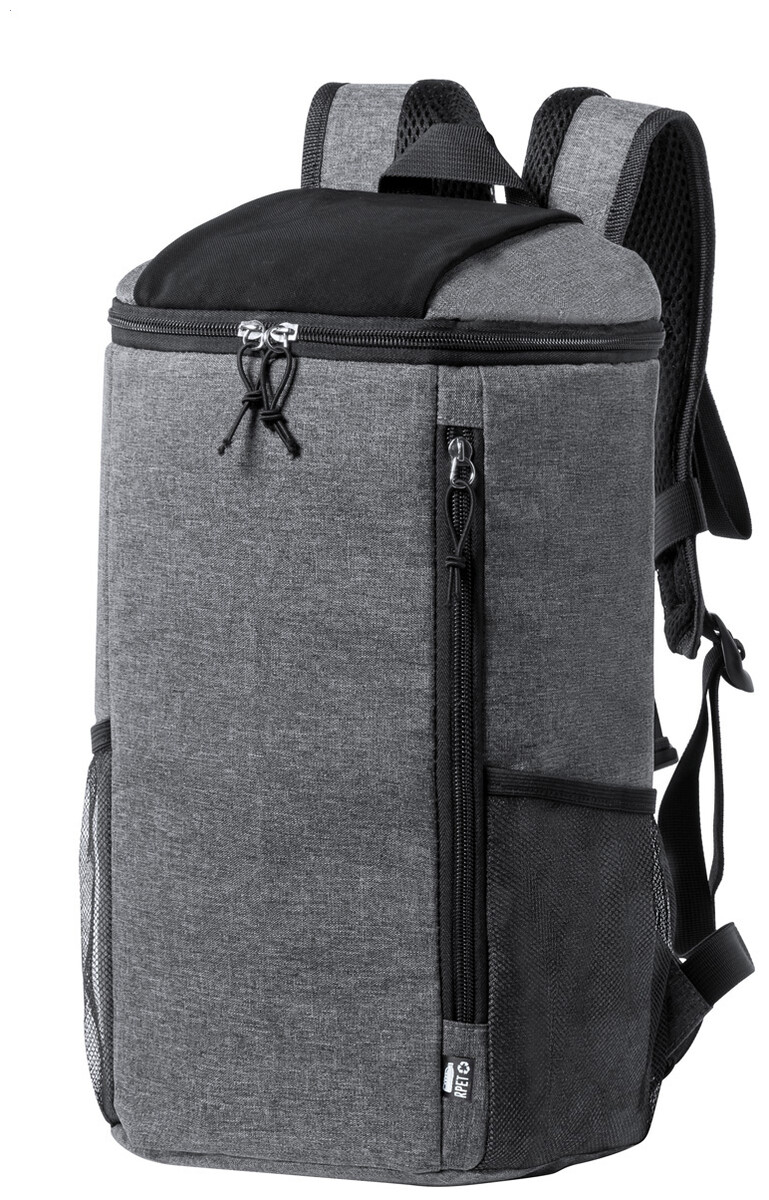 Chladící batoh RPET s hlavní kapsou na zip s PEVA výstelkou, bočními síťovanými kapsami a polstrovanými ramenními popruhy. S výrazným štítkem RPET. Polyester 600D RPET.