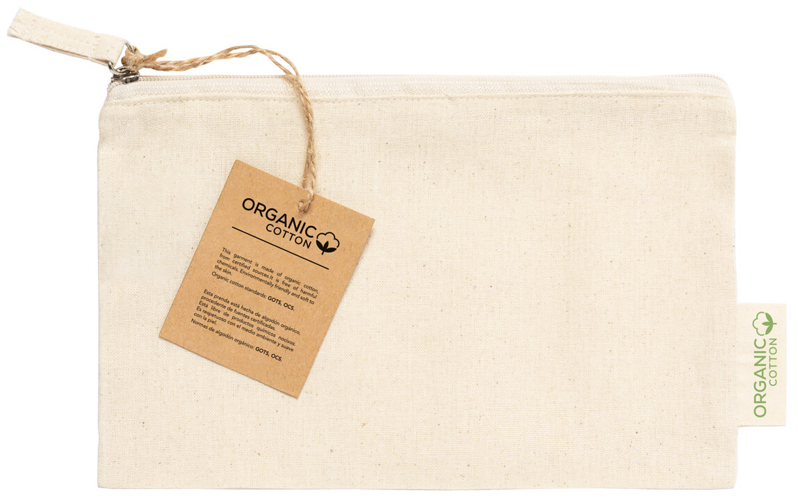 Kosmetická taštička na zip ze 100% organické bavlny. S výrazným štítkem z organické bavlny, 180 g/m2.