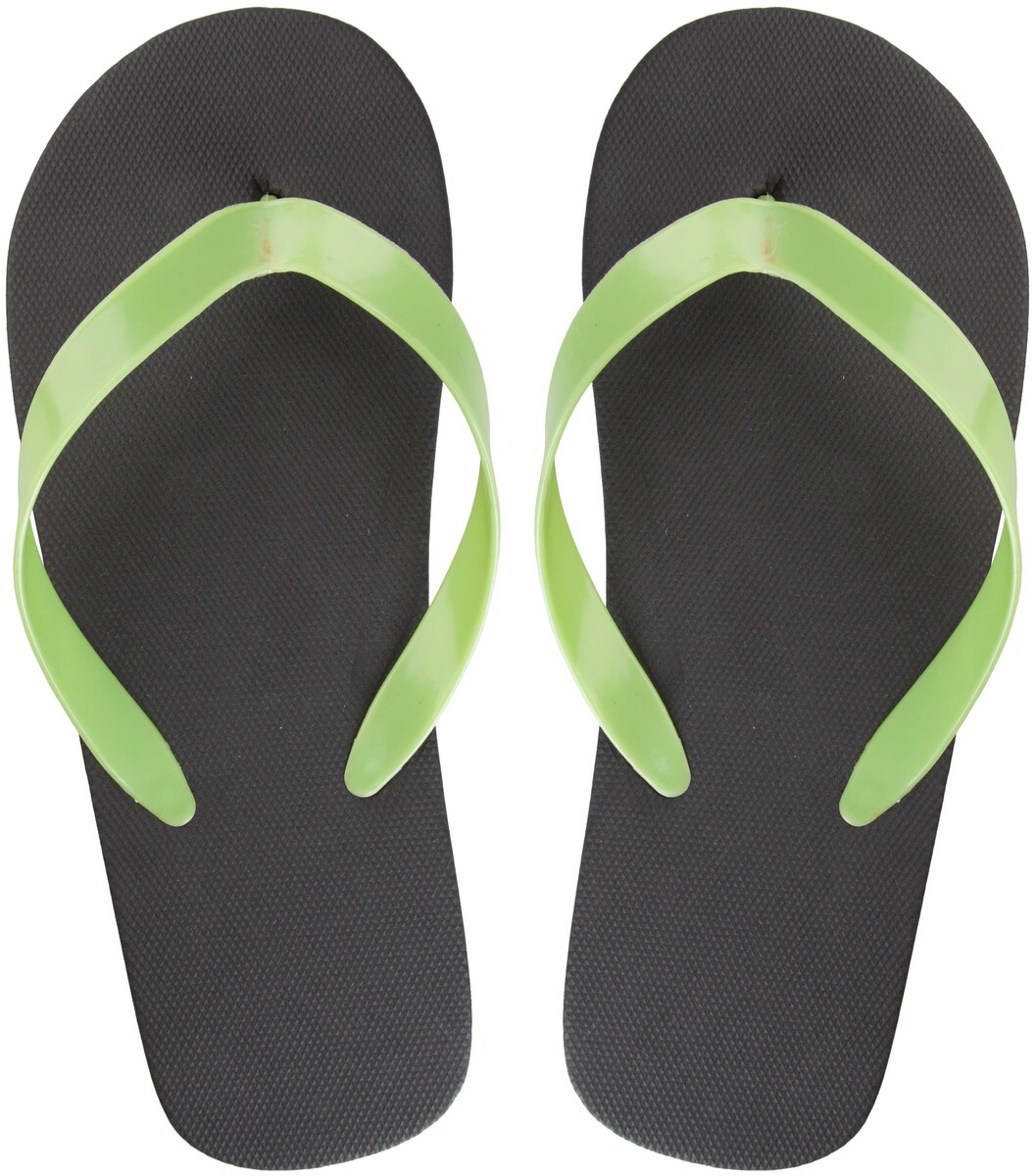 Plážové žabky na zakázku s PE podrážkou a PCV pásky. Barevnost podrážky a pásků lze na vyžádání kombinovat. Min. mn.: 50 párů/kombinace.