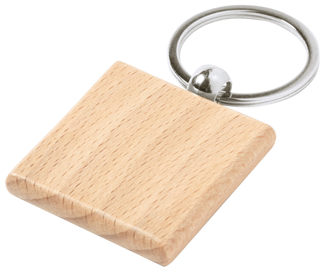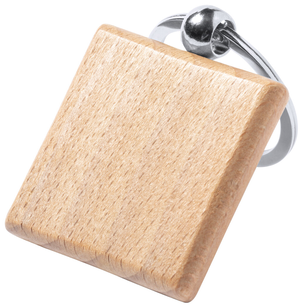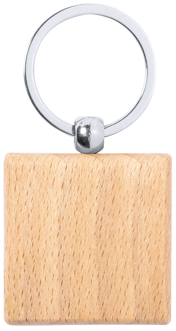Přívěsek na klíče z přírodního bukového dřeva s kovovým kroužkem.