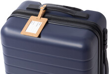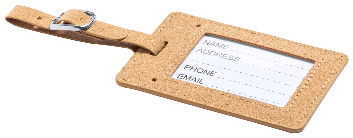 Přírodní korková visačka na zavazadla s kovovou přezkou.