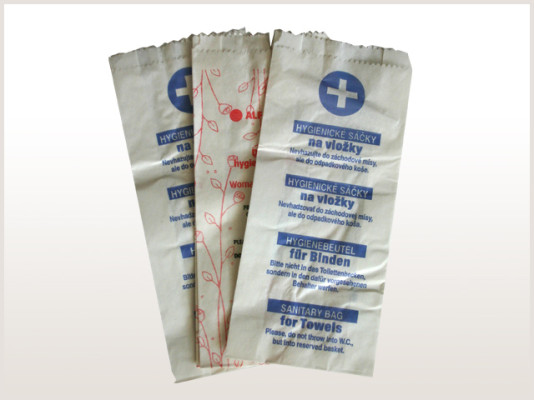Sáčky ploché s boční záložkou určené pro hygienické odkládání dámských vložek. Vyrábějí se z bělených papírů různých gramáží.