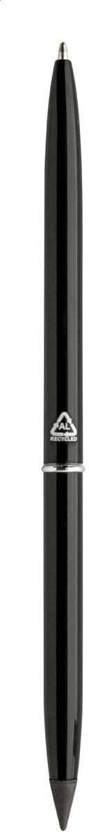 Otočné kuličkové pero 2v1 z recyklovaného hliníku a pero bez inkoustu. S modrou náplní a špičkou z kovové slitiny, která oxiduje papír. Toto pero píše podobně jako tužka a navíc je stíratelné.