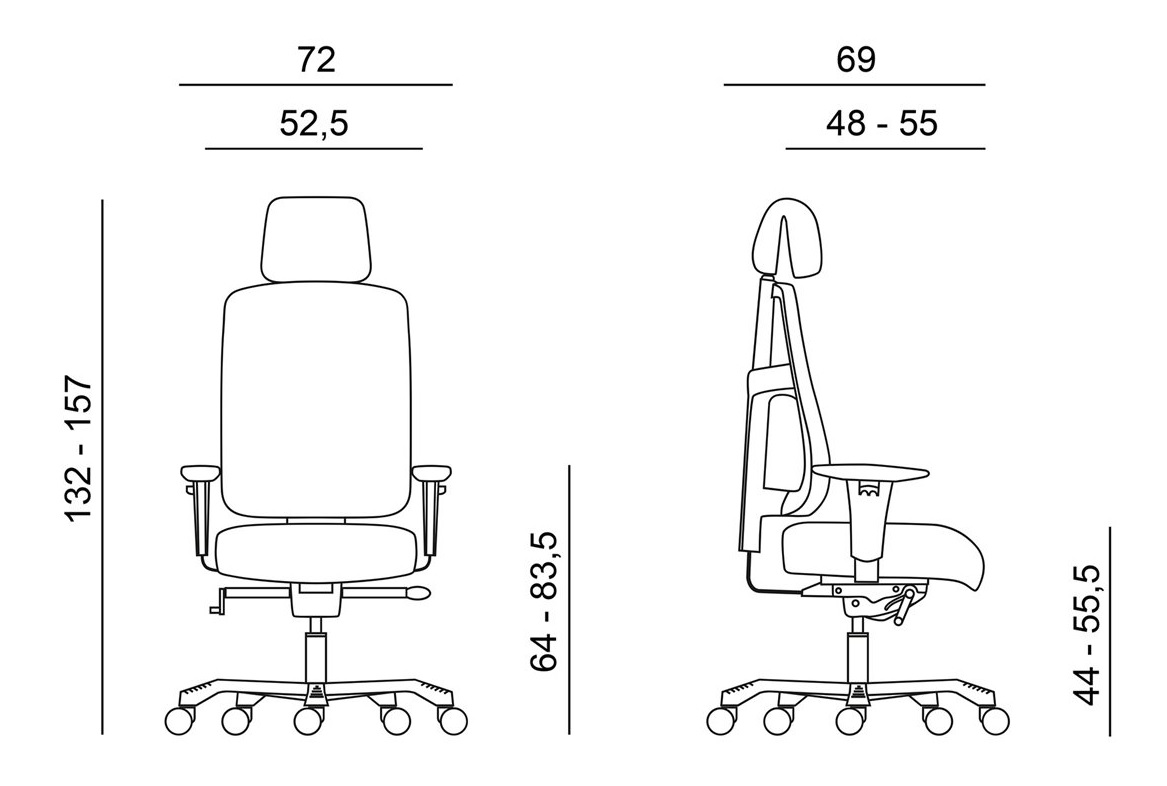 • synchronní mechanika s pětinásobnou aretací nastavení síly protiváhy v rozpětí hmotnosti 60-200 kg s ergonomicky umístěným ovládáním na boku sedáku