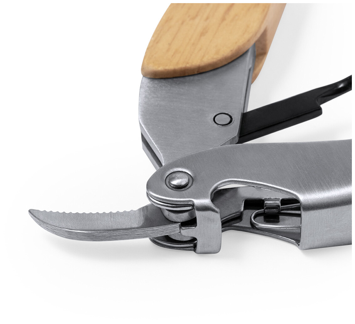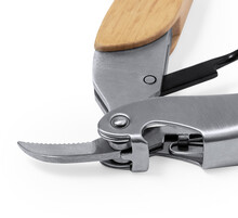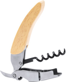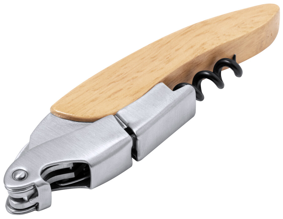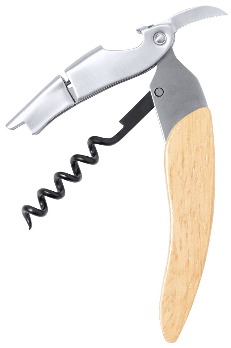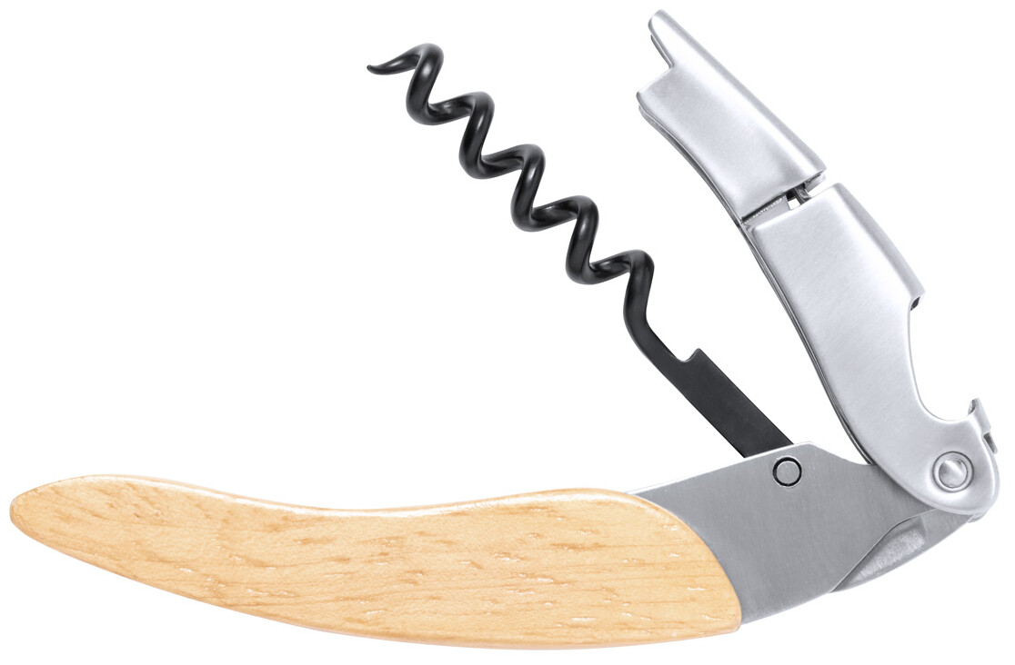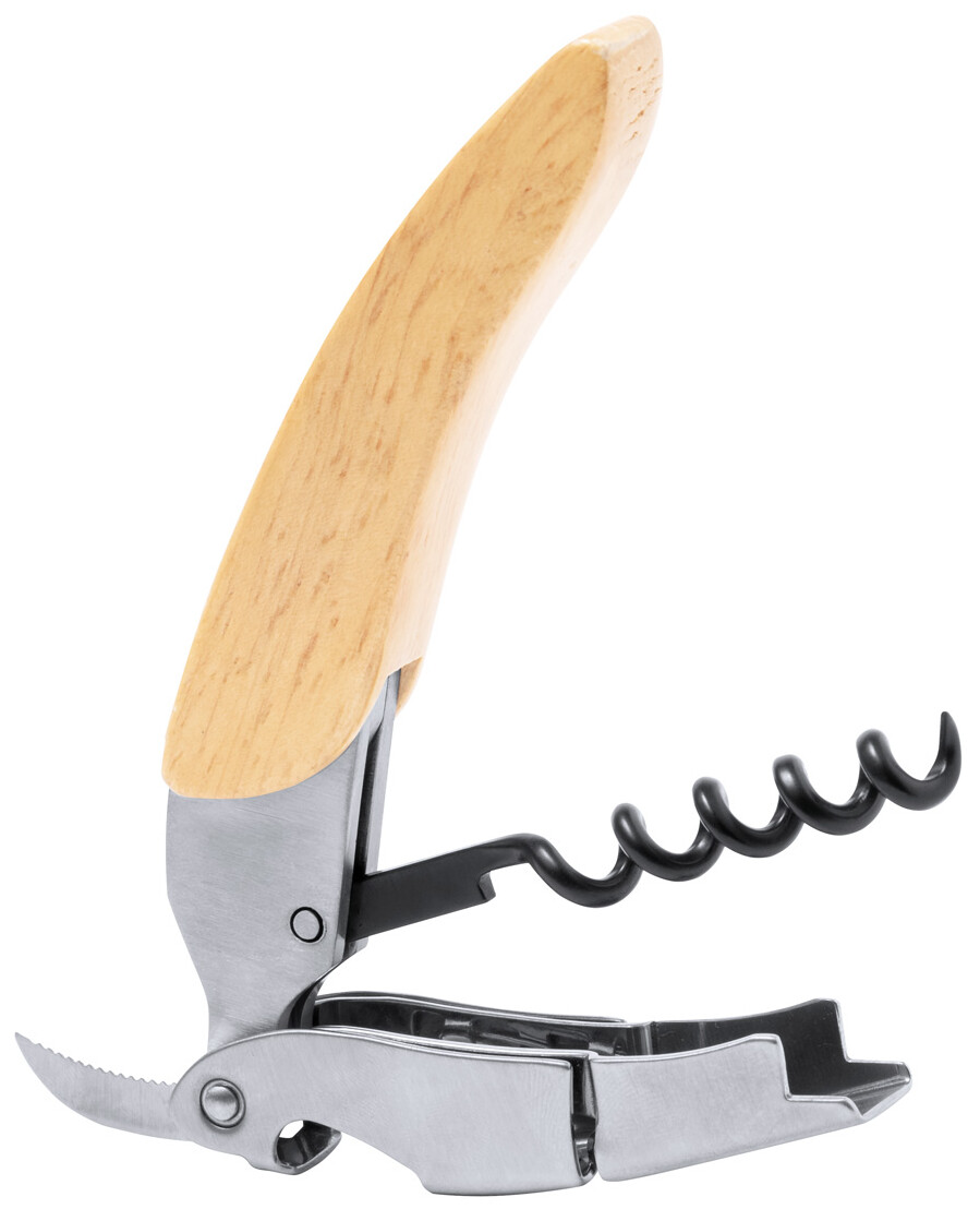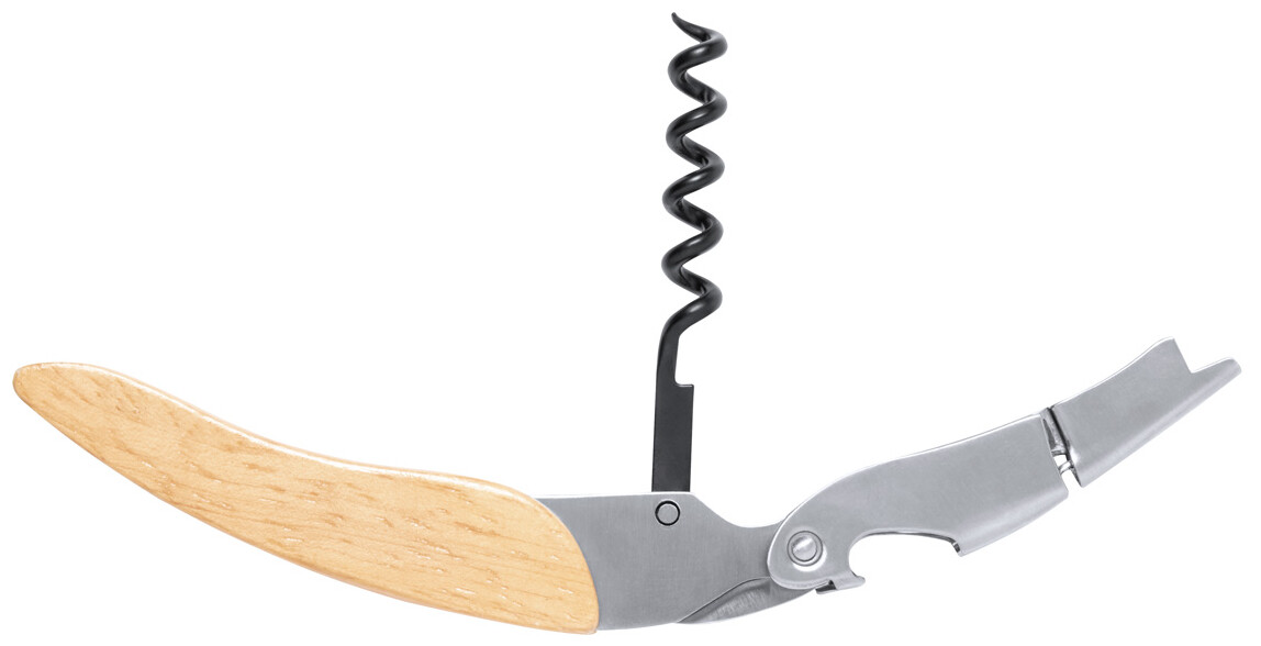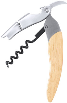 Otvírák a vývrtka z nerezové oceli s dřevěnou rukojetí.