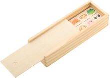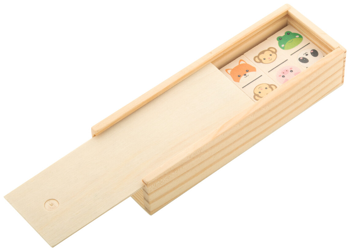 Dřevěné domino s tematickou grafikou, v dřevěné krabici. S 28 dílky.