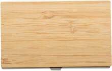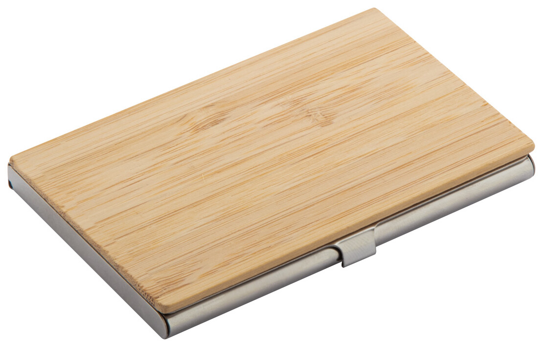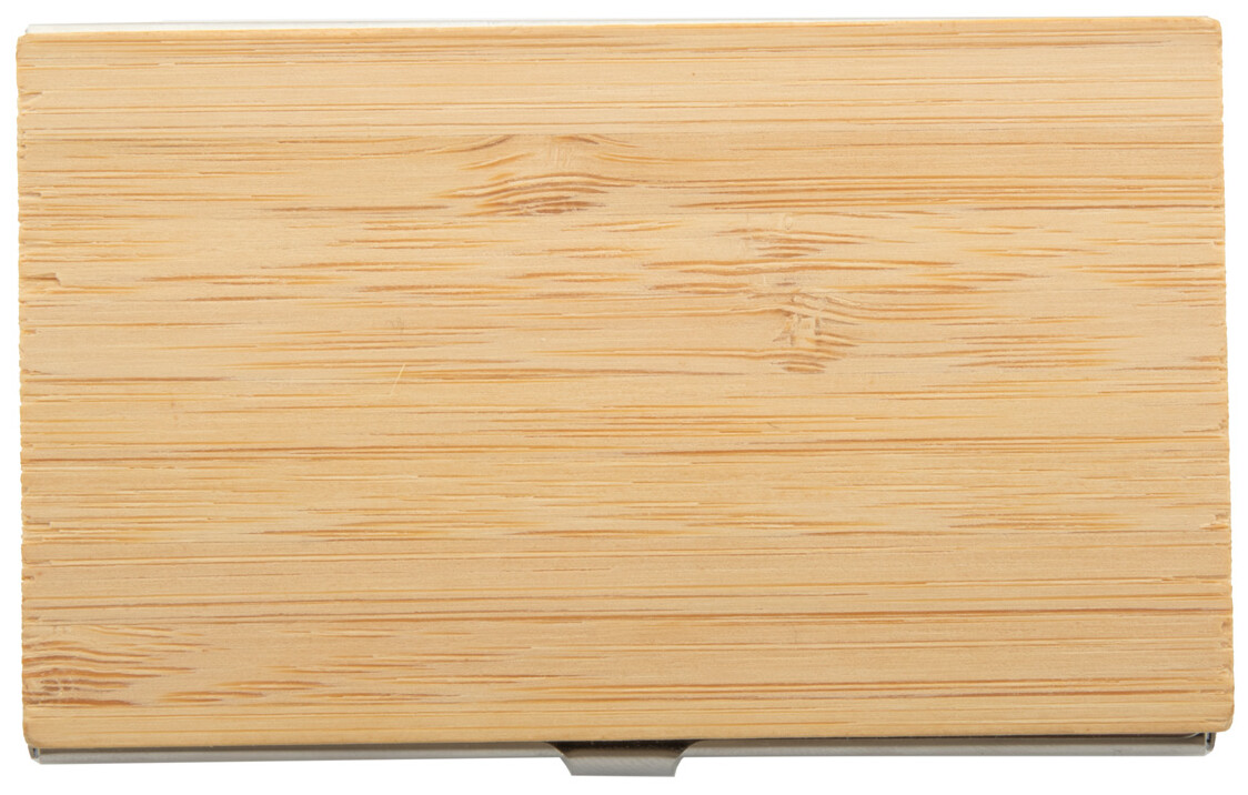 Kovový vizitkář potažený bambusem.